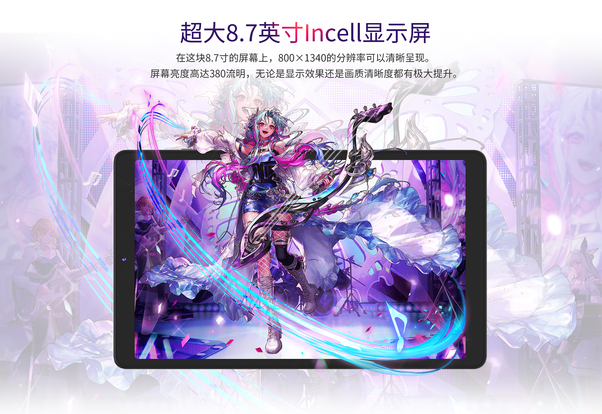 屏幕显示: 8.68英寸 HD Incell 10点触摸 I 800*1280 IPS 380尼特